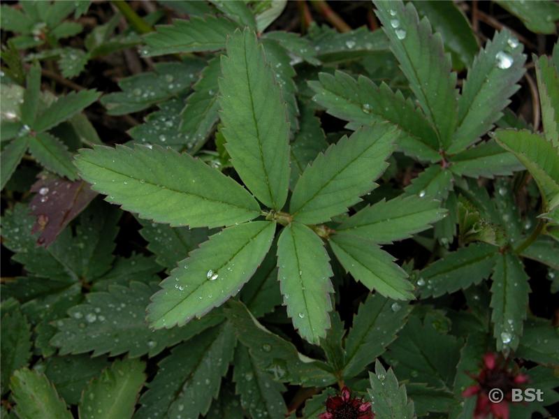 Skriðulir jarðstönglar, langir og hálftrénaðir. Stönglar uppsveigðir, dökkir og trénaðir,10-40 sm á hæð. Blöðin dökkgræn á efra borði en blágrágræn og smáhærð á neðra borði, stakstæð. Neðstu blöðin eru stakfjöðruð en efri stöngulblöðin fingruð. Smáblöðin 5 (sjaldan 7) oddbaugótt eða öfugegglaga, reglulega gróftennt og þéttstæð. Axlablöðin löng og ná upp á miðjan blaðstilkinn. Blómleggir úr blaðöxlum, mislangir, sveigðir og greinóttir. Blómin fimmdeild. Krónublöðin rauðbrún eða brúnsvört, helmingi styttri en bikarblöðin. Utanbikarblöð mjó, þau innri stór (8-12 mm), dökkrauð að innanverðu og ydd. Bikar- og krónublöð falla ekki af fyrr en aldin eru fullþroskuð. Fræflar margir með dumbrauðar frjóhirslur. Margar litlar frævur á kúptum blómbotni. Blómgast í júní-júlí. LÍK/LÍKAR: Engar. Auðþekkt á blómum og blöðum.Í eldri flórum sem Potentilla palustris (L.) Scop. og sumar heimildir halda enn fast í það gamla heiti.