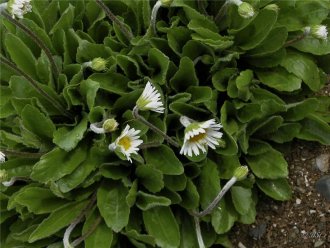 Laifblöðin í hvirfingu við jörð, 3 –15 x 1 –3 sm, aðallega spaðalaga til oddbaugótt, mjókka smám saman að grunni, heilrend, stilkuð, hærð á neðra borði en lítt hærð á því efra. Blómin stök á stöngulendum. Karfan 2 –4 sm í þvermál stök, með keilulaga blómbotn. Reifar 6 –8 mm háar, breiðbjöllulaga, reifablöðin í 2 greinilegum röðum sem eru eins, mjókka smám saman að oddinum græn að mestu. Tungublóm 30 – 40, með tungur allt að 10 x 2 mm, hvít eða bleik afturundnar þegar þær fara að visna. Hvirfilkrónur 4 – 7 mm, gular. Svifkrans 4 – 5 mm með mislöng hár. Aldin 2 – 2,5 mm. Blómgast frá miðju sumri og fram á haust.