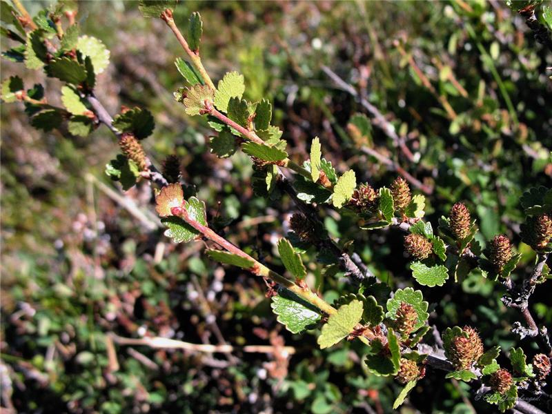 Runni, jarðlægur eða uppsveigður, 50 sm hár, stundum allt að 1 m hár. Börkur er dökkur, ársprotar brúnir, þéttdúnhærðir, aldrei vörtóttir. Plöntuna er hægt að nota til að þekja jarðveg, myndar útbreidda þúfu, allt að 1,2 m breiða.