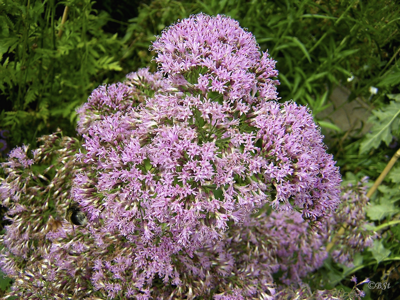 blómin oftast 3 saman í körfu, lítil, pípukrýnd, blómsveipir líkir og á fjallasveip en minni blöðin 10-15cm í Þm, að mestu hárlaus, djúphjartalaga eða nýrlaga, reglulega gróftennt oft með rauðfjólubl. blæ (ung blöð)