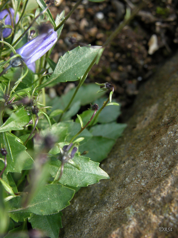 Lík C. rotundifolia. Grunnlaufin lítil, grasleit, bandlaga, stilklaus. Stöngullaufin minni, heilrend og stilklaus. Blóm í gisnum greinóttum klasa (stundum einblóma) á löngum blómstilkum, lúta. Enginn aukabikar. Krónan bjöllulaga, mjókkar að munnanum, fagurblár. Blómgast síðsumars.