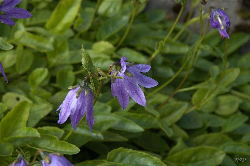 Stofnstæðu laufin breiðlensulaga til egglaga-aflöng, langydd, bogtennt, legglöng, dúnhærð. Blaðstilkar stöngullaufa styttast eftir því sem ofar dregur á stönglinum, laufin alveg stilklaus efst.Blómklukkur lútandi, einstakar eða fáar saman í fínlegum, einhliða klasa eða knippi. Aukabikarflipar smáir eða engir. Krónan breiðbjöllulaga, klofin næstum niður til hálfs, dökk silkipurpura til bláfjólublá. Stíll stendur nær ekkert út úr blóminu. Hýði opnast með götum neðst.