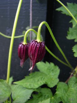 Jarðlægur, lauffellandi runni. Lauf þrískipt, allt að 8 sm, hjarta-egglaga, lang-odddregin, dálítið hjartalaga við grunninn, gróftennt, stundum þríflipótt eða þrískipt. Blóm allt að 3,5 sm, stök, blómskipunarleggir allt að 15 sm, bikarblöð dauffjólublá, oddbaugótt-lensulaga allt að 3 sm, ullhærð á jöðrunum, með spaðalaga gervifræfla, 2 sm.