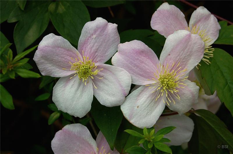 Mjög kröftugur vafrunni. Ungar greinar dálítið dúnhærðar en verða hárlausar með aldrinum. Lauf með þrjú smálauf, laufleggir allt að 9 sm langir, smálauf allt að 10 sm, egglensulaga, ydd, og dálítið djúp-þríflipótt, mjókka smám saman að grunni eða eru bogadregin við grunninn, grófsagtennt, sjaldan heilrend, hárlaus, smáblaðleggir stuttir. Blóm 5 sm í þvermál, blómleggir með 1-5 grópir, axlastæðir, allt að 21 sm langir, dúnhærðir. Bikarblöð hvít eða bleik, 4, sjaldan 5, oddbaugótt, allt að 4 sm, snubbótt eða ydd, skástæð, hárlaus eða næstum hárlaus innan en dúnhærð á æðum á ytra borði. Smáhnetur tígullaga, hárlausar með 1,5 sm langa, hvíta, fjaðurlíka stíla.