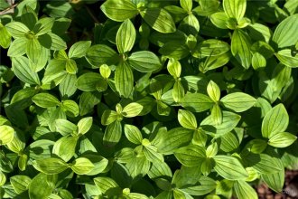 Lauf 6-12 sm, stakstæð, í endastæðum þyrpingum, egglaga-oddbaugótt, dökkgræn ofan, óreglulega bláleit-blágræn, neðan æðastrengir í 5-6 pörum, laufleggir 5-6 sm. Litir haustlaufa ekki áhrifamiklir, blanda af gulu með rauðpurpura litbrigðum.Blómin lítil í 5 sm breiðum, flötum sveipum, gulhvít, blómleggir með rauða dúnhæringu. Aldin hnöttótt, breytast frá grænu í rauðleitt stig og í blásvart sjaldan gul, hrímug. Aldinin standa ekki lengi. Aldinleggurinn stendur áfram og verður fallega kóralrauður.