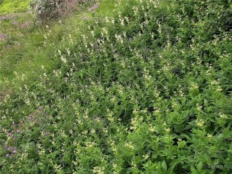 Yrkið 'Flore Pleno' er með ofkrýnd blóm og 'Aurea' er með skærgul laufblöð.