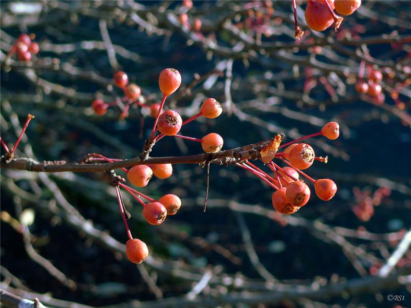 Í beð, blönduð limgerði. stök. Meðalvökvun. --Aldinin eru notuð í matseld.Fuglar éta þau líka, tína allt af trjánum yfir veturinn.Tréð þarf löng kuldatímabil að vetrinum til að blómstra mikið að vorinu.-- Fallegt allan ársins hring.