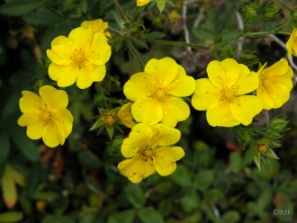 Fjölæringur, blómstönglar allt að 45 sm háir, floshærðir, með löng hár og kirtilhár. Laufin fingruð, smálauf 5-7 talsins, allt að 3,5 sm, aflöng-lensulaga, græn, sagtennt til fjaðurskipt. Blómin mörg, allt að 2,5 sm í þvermál, í hálfsveip. Bikarblöð þríhyrnd-lensulaga, utanbikarblöð bandlaga, jafn löng og eða ögn lengri en bikarblöðin. Krónublöð 12 mm löng, gul, jafn löng og eða ögn lengri en bikarblöðin, öfughjartalaga.
