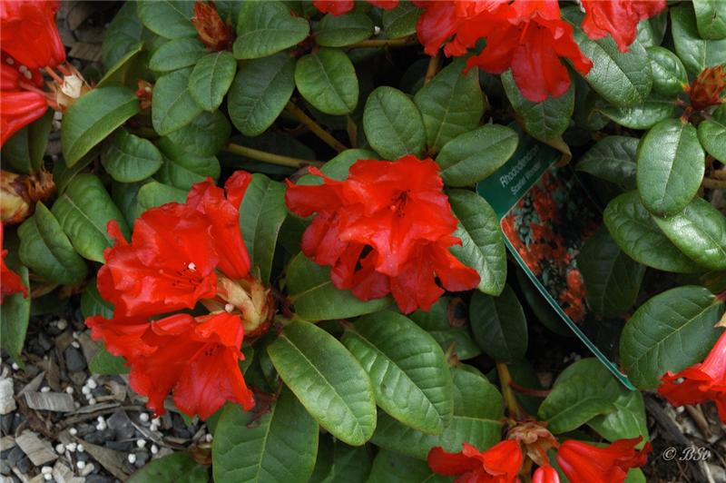 Foreldrar (♀ × ♂): 'Essex Scarlet' × R. forrestii Repens Group) =( ? × ?) × R. forrestii Repens GroupBlómskipunin er klasi af sterkrauðum blómum fyrri hluta sumars. Blómin er bylgjuð og breiðtrektlaga, ilmlaus og ekki með neina bletti eða doppur. Runninn er oft um hnéhár, með lítil, oddbaugótt milligræn lauf. Laufin mjög snúin og með áberandi æðar.;