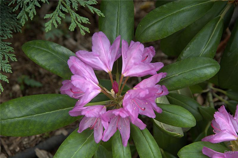 Album Blómin eru stór og hvít, en blómknapparnir eru lilla litir áður en þeir springa út. Rhododendron catawbiense Catawbiense Grandiflorum Waterer (1850) Bretland. Þetta er kvæmi/úrval af villitegundinni R. catawbiense, sem er í ræktun.Mjög harðgerður og kröftugur runni, sem er um 2,5 m hár, talinn geta orðið allt að 6 m. Blómklasarnir eru kúlulaga með lilla-purpuralit blóm, hvert og eitt með gulan blett.http://www.briggsplantpropagators.com, http://www.hirsutum.info