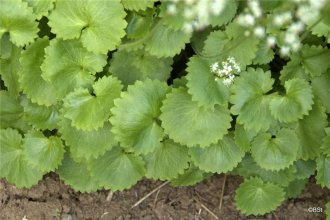 Fjölær jurt með tiltölulega þéttan, endastæðan brúsk hjartalaga laufa.